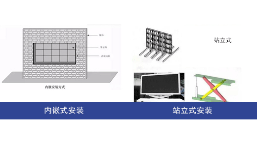 LED顯示屏主要的安裝方式有:內(nèi)嵌式、站立式、壁掛式、懸臂式、懸掛式、立柱式、樓頂式。根據(jù)客戶現(xiàn)場安裝環(huán)境選擇合適的安裝式。
